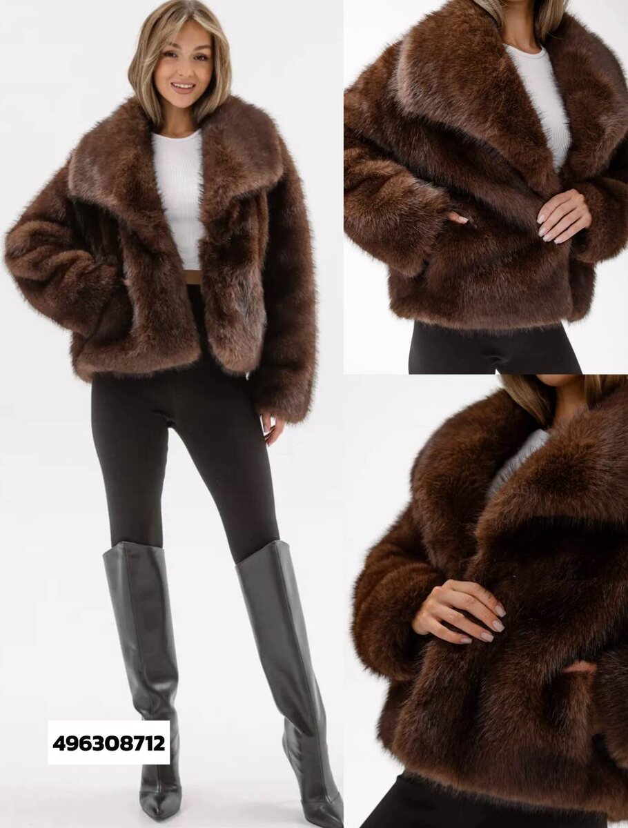 1) Шоколадная шубка-джекет из экомеха — арт. 496308712