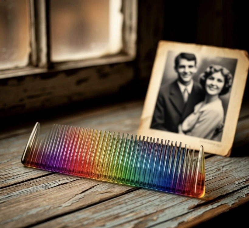 Она лежала на полке в самом дальнем углу магазина, будто ждала именно меня. Луч света от люминесцентной лампы поймал ее, и она вспыхнула холодным серебристым сиянием. Я остановилась как вкопанная. Это была просто расческа, но такая, какой я никогда не видела. Ровная, граненая ручка из матового металла, а зубчики — не просто зубчики. Они переливались всеми цветами радуги, словно были выточены из льда, в котором играет солнце.