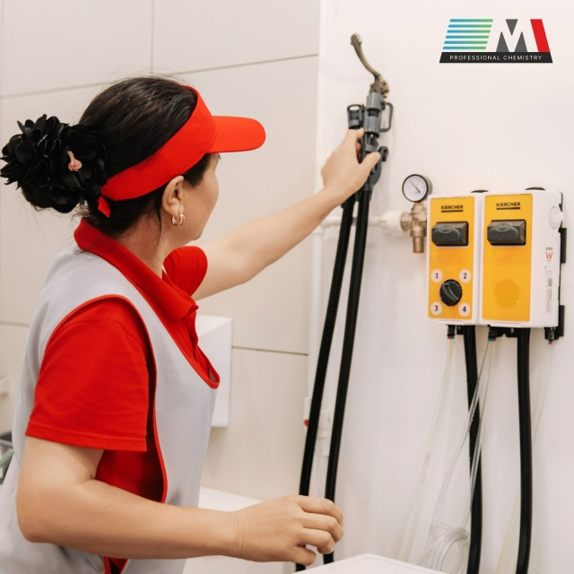 1. Точный расчёт концентрации – Используйте рекомендованные нормативы расхода из ТПС, а не «на глаз». – Проводите тесты на небольших участках: часто оказывается, что рекомендованная доза может быть уменьшена на 10–20 % без потери эффективности. 2. Оптимизация температуры и времени экспозиции – Для многих средств повышение температуры воды на 5–10 °C ускоряет очистку и позволяет снизить концентрацию на 1–2 %. – Удлинение времени контакта (на 1–2 минуты) помогает лучше растворять загрязнения при меньшей дозировке. 3. Правильная очередность препаратов – При послестроительной уборке сначала удалите грубые минеральные отложения кислотным средством, затем перейдите к щелочному. – Такой «двухэтапный» подход снижает расход щелочи на 30 % и кислот — на 20 %. 4. Использование дозаторов и систем автоматического разведения – Механизированное дозирование исключает человеческий фактор, перерасход и слишком «жирные» растворы. – Настройте модуль под конкретную модель дозатора, чтобы каждая канистра р