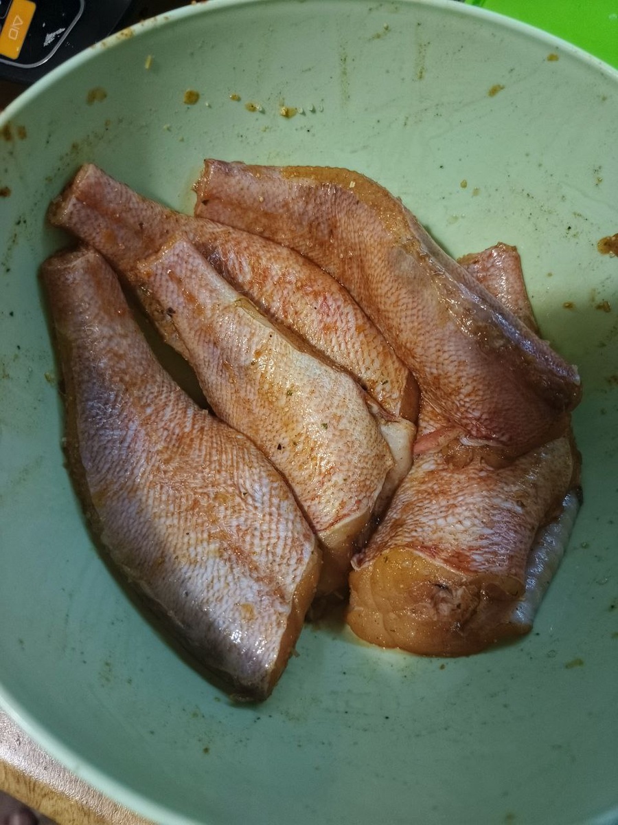 Запоздал сегодня с тестами. Решили попробовать морского окуня, первый раз в жизни его готовил.