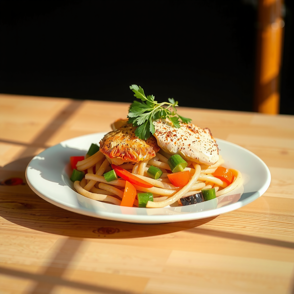 В этом рецепте идеально сочетаются белки, углеводы и витамины: курица даёт лёгкий белок, паста — энергию, а овощи обеспечивают клетчаткой и микроэлементами.