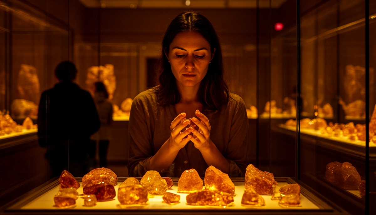 Переступив порог, она сразу попала в иное измерение. Воздух здесь был особенным — сухим, прохладным и на удивление беззвучным, будто густой ковер поглощал все случайные шорохи и голоса редких посетителей. Свет приглушенно падал из окон-бойниц, выхватывая из полумрака витрины, в которых на бархате лежали сокровища. Но это были не алмазы и не золото. Это был янтарь. Тысячи, десятки тысяч кусочков солнечного камня всех оттенков: от почти белого, молочного до густо-медового, от лимонно-прозрачного до темного, почти вишневого, в который хотелось вглядываться, как в ночное небо.