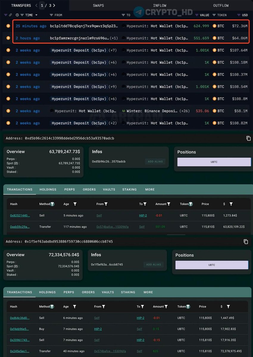 Ранее он продал BTC на $4,000,000,000 и купил #ETH. Вчера он снова перевел 1176 BTC ($136m) на Hyperliquid для продажи.