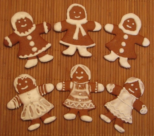 Выпекаются фигурки при 180-200°С 5-10 минут в зависимости от размера и толщины раскатки. Готовность пряничного теста не определяют методом «сухой палочки», в этом случае он не работает, а обычно ориентируются по времени, цвету краешков фигурок и легкому надавливанию на пряничек: если тесто проваливается, остается след от пальца, пряничек пока не готов.
