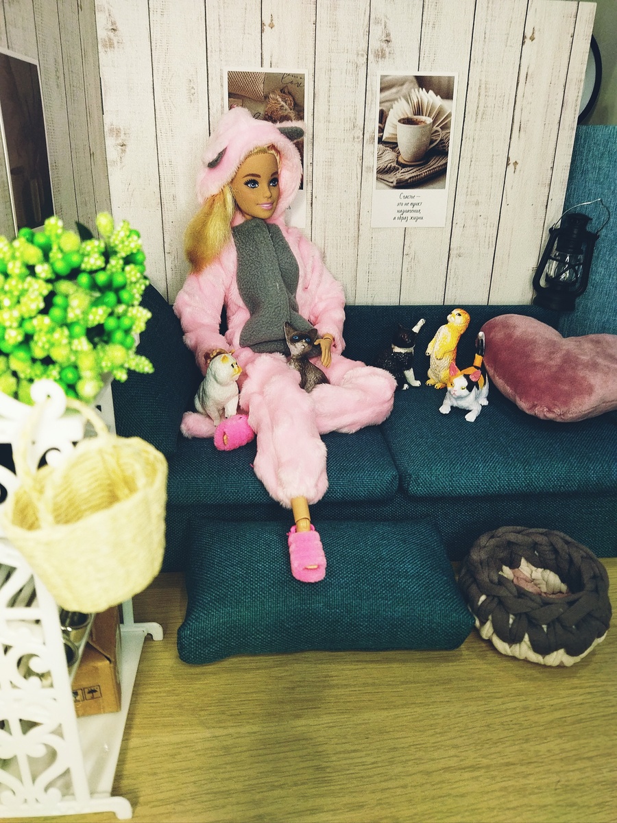 Доброго дня, сохоббиты! 🍁 Рядом с домом, где я живу, удачно расположен Чижик, и его частый гость этого магазина) Мне нравится их небольшой отдел, который они сами назвали ЧижИкеа, там можно найти что-то интересное для дома и уюта, развивающие игрушки для детей. В общем всякое разное, полезное и не очень) На днях я нашла там смешные фигурки разномастных котов за 49 рублей! Собрала пятерых пластмассовых пушистиков, но вроде их должно быть больше🤔 Кто из кукол "унаследовал" мою любовь к кошкам, так это Стася! Надела свой любимый кошачий кигуруми и обложилась котами 😁 Надо отметить, что котаны максимально упоротые, но за такие деньги, я считаю, не стоит ждать многого) Особа королевских кровей😁 Вот это синие глазищи!👀 Это точно кот? Или суслик?🤣 Сейчас будет кусь! И цап-царап! - Кто это тут меня за волосы трогает? Дай пять, котейка! 🐱 Стася, ну куда тебе столько котов! У тебя же ещё Лето есть! - Котов, много не бывает! - заявила Стася. - Это же самый настоящий пушистый антистресс💕