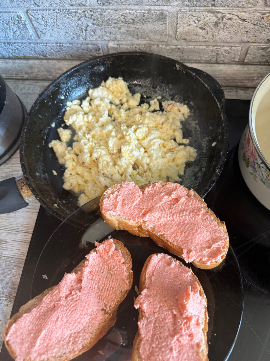 Мы с мужем питаемся стабильно едой из дома: завтраки- бутерброды, запеканка, домашняя пицца, омлет или выпечка. Я всегда почти дома, поэтому у меня завтраки поразнообразнее. Но и муж не голодает, он за стабильность даже в завтраках, поэтому надо чтоб посытнее и желательно с мясом.