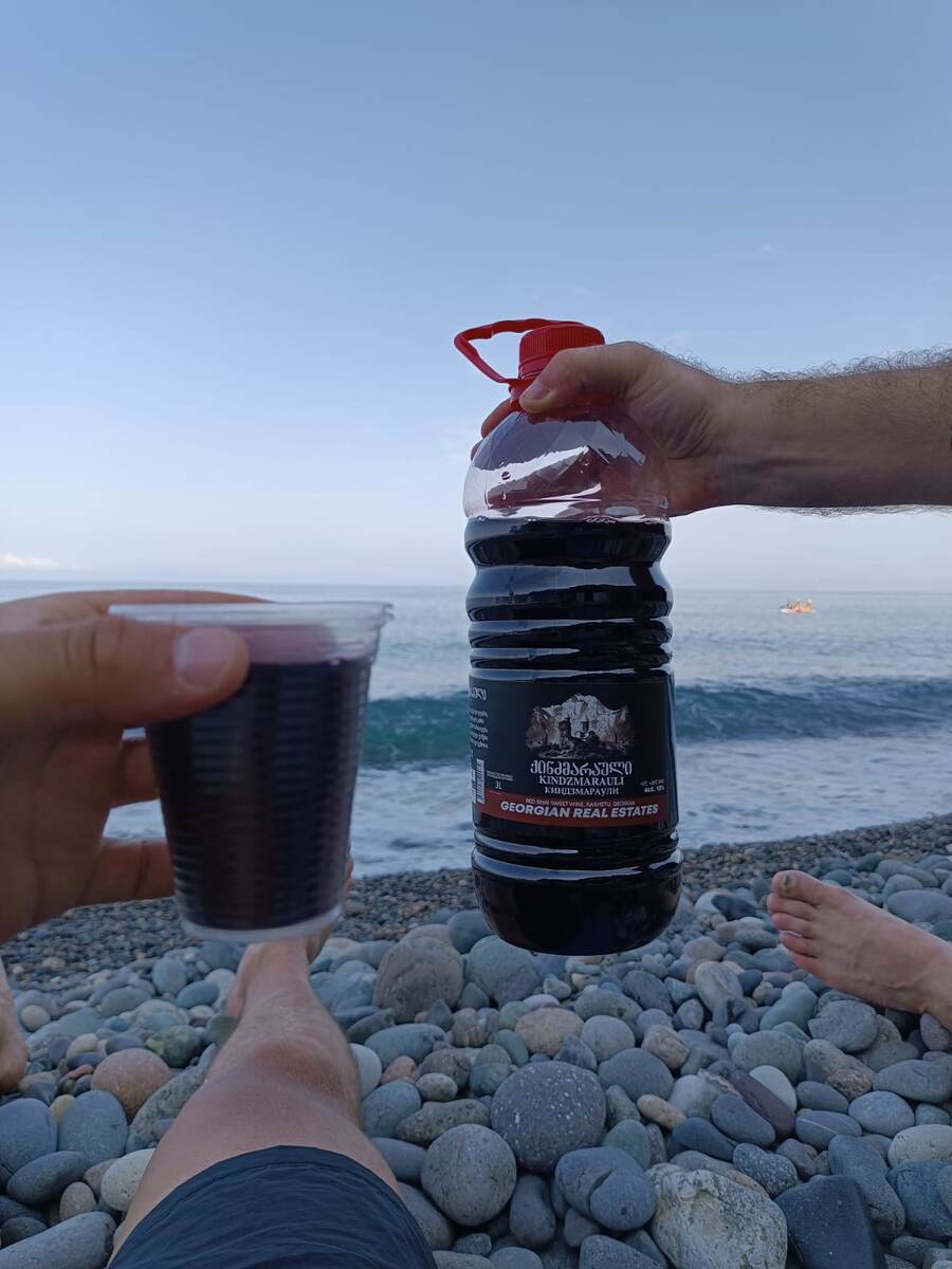 Утром мне написал Арам, с которым в Москве года 4 уже не виделись, и спросил, не в Батуми ли я. Он только-только прилетел) Будил ребят, но все спали, кроме Лены, поэтому, когда Арам пришел с вином, мы поехали купаться на Зеленый Мыс. Народа мало, пляж, вино, море - полный кайф!