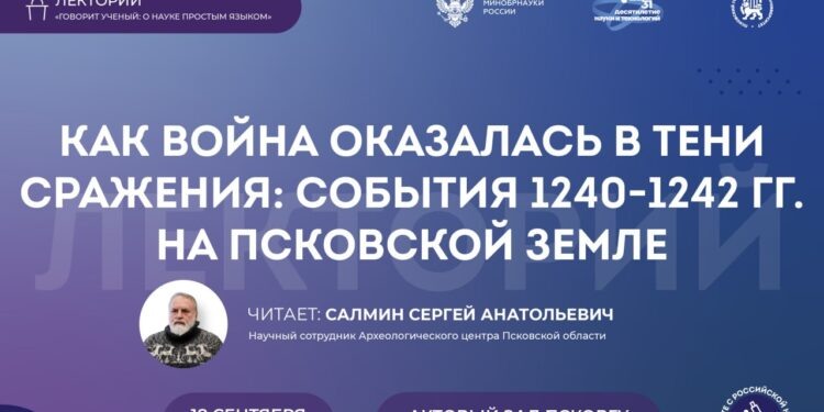 5 апреля 1242 года на льду Чудского озера произошло одно из самых известных и одновременно загадочных сражений в российской истории — Ледовое побоище. Это событие, отмечающее 800-летний юбилей, остается предметом пристального изучения и горячих дискуссий как среди профессиональных историков, так и любителей истории. Вопросы касаются численности войск, стратегий и значимости самого сражения. 18 сентября 2025 года в актовом зале Псковского государственного университета состоится открытая научно-популярная лекция Сергея Салмина, научного сотрудника Археологического центра Псковской области. Лекция пройдет в рамках Всероссийского фестиваля «#Вместе с российской наукой», организуемого ПсковГУ и поддерживаемого грантом Минобрнауки России. Сергей Салмин расскажет о скрытых аспектах событий 1240-1242 годов на Псковской земле, когда немецкая Ливония вела войну против псковских и новгородских земель. На лекции будет обсуждаться не только Ледовое побоище как отдельный эпизод, но и его место в бол