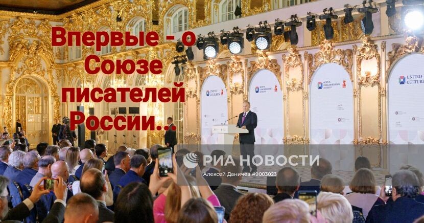 ИСКАЖЕНИЯ И ВИТИЕВАТЫЕ ЗАХОДЫ Выступление президента на пленарном заседании Форума объединённых культур в Питере было сдержанным и «правильным». Либеральный журналист А. Колесников прямо не знал, за что зацепиться: «Очень бы хотелось что-нибудь отметить из его речи, но не получается». Мол, всё предсказуемо, но… «Плюс абзац про конкурс «Интервидение» (мы о нем и его еще услышим, будьте спокойны) и абзац про обновленный Союз писателей России — набирающее новую силу творческое объединение, «отражающее здоровые процессы преемственности» (да так набирающее, что дух захватывает)». Откуда кремлёвский журналист взял такую формулировку? Я посмотрел стенограмму речи – не было там про «обновлённый Союз писателей». Звучало так: «Отрадно, что сегодня в России в разных сферах культурной жизни происходит заметное обновление, набирают новую силу творческие объединения и союзы, в том числе Союз писателей России, который консолидирует в своих рядах ярких представителей литературного сообщества». Зачем в