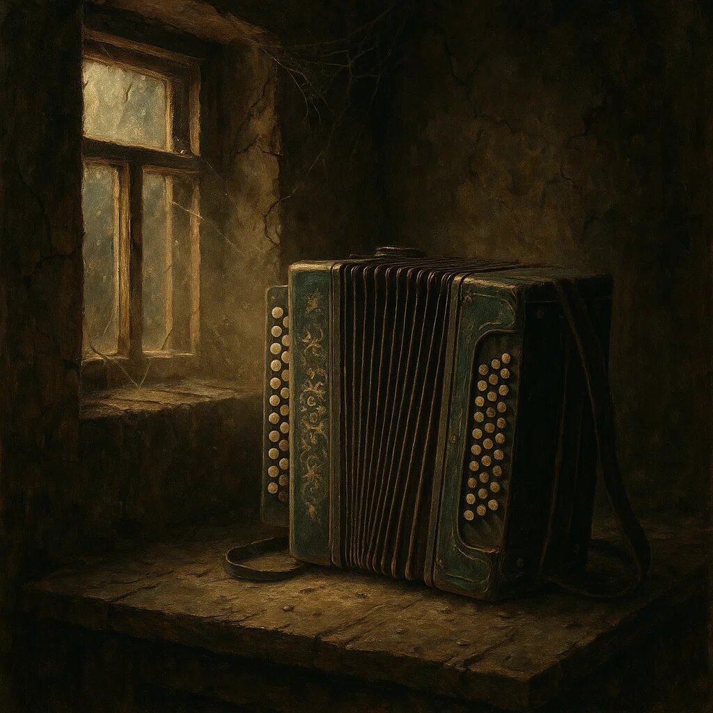 Я осторожно спустил находку вниз и принялся очищать её от пыли. Гармонь оказалась в хорошем состоянии — только несколько клавиш залипало. Я попробовал сыграть — из мехов послышались хриплые, но всё ещё мелодичные звуки.