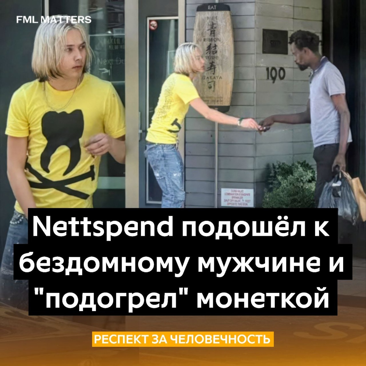 🙏 NETTSPEND ПОМОГ БЕЗДОМНОМУ! Рэпер проявил неожиданную щедрость — подошёл к бездомному мужчине на улице и «подогрел» его монеткой Даже маленький жест может значить многое для того, кто на дне 💔 💀 FML MATTERS