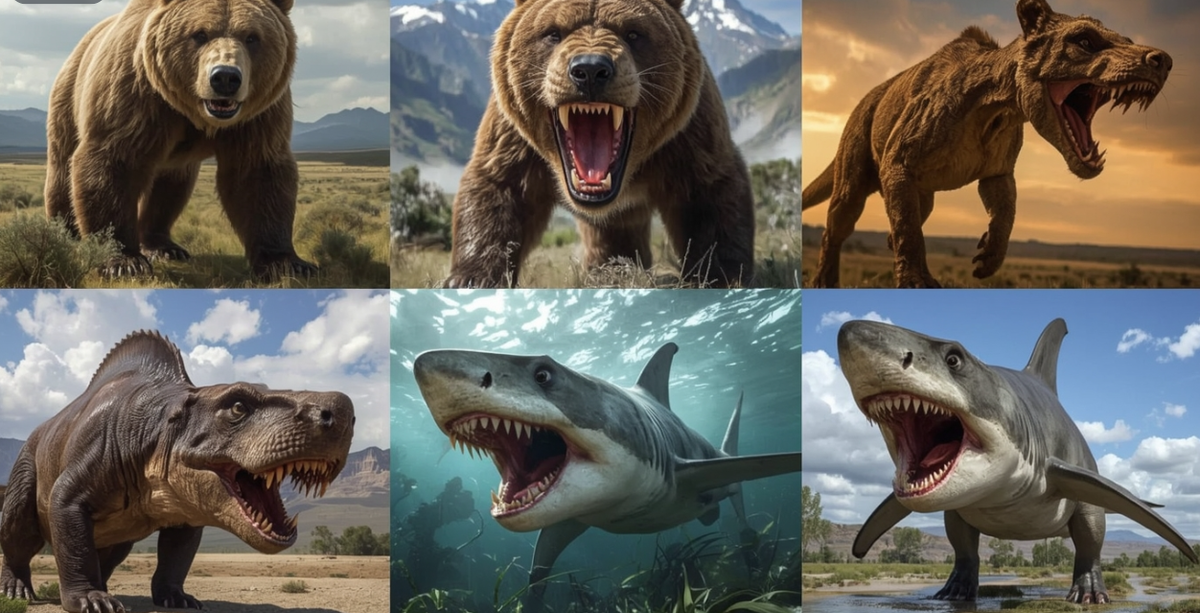 Только услышишь динозавр – сразу в голове картинка: огромный, зубастый тираннозавр или ловкий велоцираптор. Брр, аж мурашки по коже! Но динозавры – это не все, кто топтал нашу планету до нас. За миллионы лет до появления людей тут бродили создания, от одного вида которых дух захватывало. Эти гиганты затмевали даже самых страшных динозавров! Приготовьтесь к крутому забегу во времени, где мы нос к носу столкнемся с самыми невероятными и жуткими доисторическими зверюгами – от матерых морских хищников до сухопутных громадин. Держитесь крепче! **Дунклеостей: Хозяин древних морей** Эта рыбина плавала в морях задолго до динозавров, примерно 370-360 миллионов лет назад. Настоящий кошмар глубин! * **Размеры и защита:** * В длину: 8-10 метров * Вес: несколько тонн * Голова – как в танке, покрыта костяными плитами. * **Челюсти:** * Вместо зубов – костяные лезвия, острые, как бритва, и постоянно затачиваются. * **Сила укуса:** *Укус этой махины был в 5-6 раз сильнее, чем у нынешнего