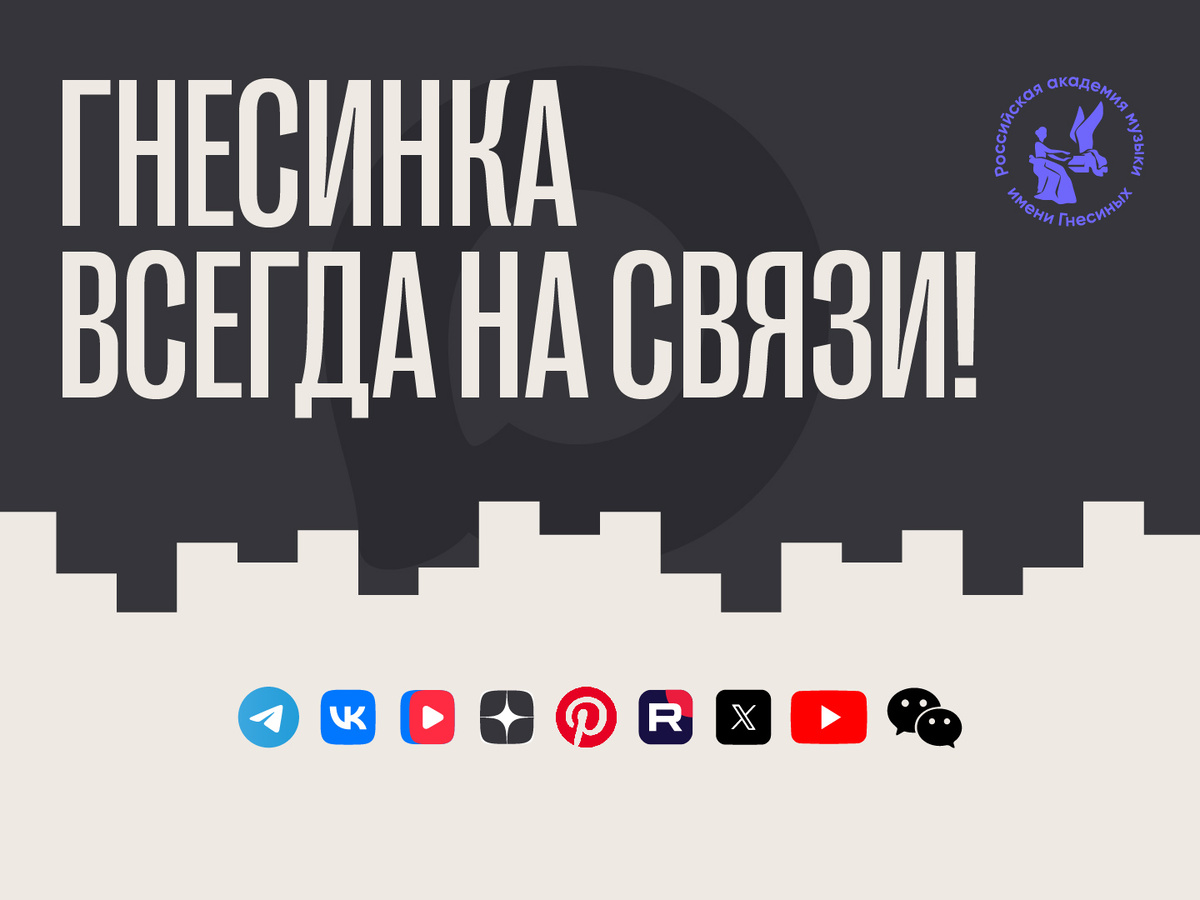 🎉 Новый учебный год – новые социальные сети! ❓Хотите быть в курсе всех самых важных событий в Российской академии музыки имени Гнесиных? ❗️Подписывайтесь на официальные соцсети! Спойлер: появились новые. А скоро запустим еще одну! Как думаете, какую? Пишите свои варианты в комментариях ⬇️ 💜 Обязательно ставьте 👍, комментируйте и голосуйте за Гнесинку!