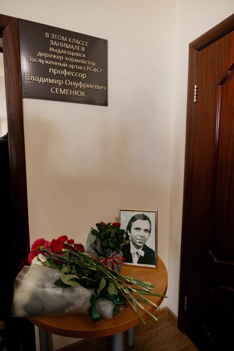 Торжественное открытие мемориальной доски заслуженному артисту РСФСР, художественному руководителю и дирижеру Академического хора РАМ имени Гнесиных, профессору Владимиру Онуфриевичу Семенюку состоялось 13 сентября, в день рождения музыканта.