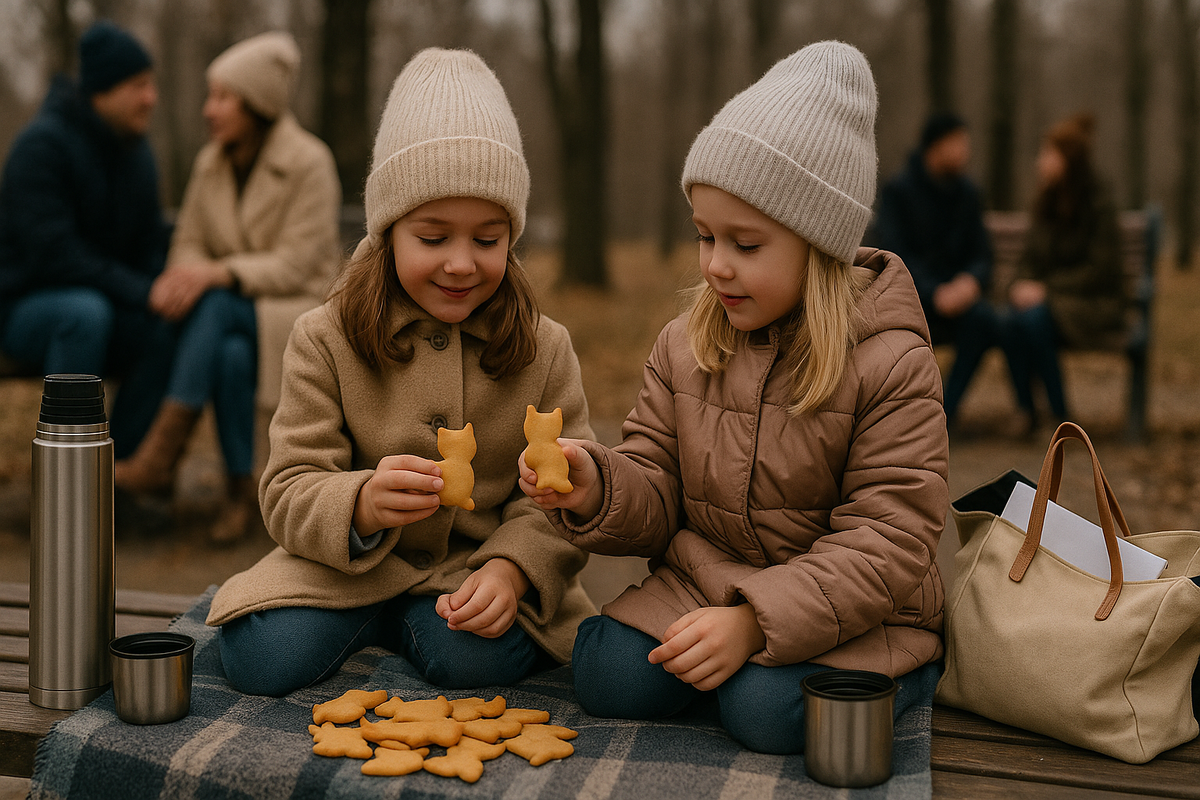В пятницу они реально встретились в парке — я пришла на пять минут, под предлогом «возвращала термос». Соня и Лида сидели на коврике рядом и раскладывали печенье по тарелке — кошек к кошкам, звёзды к звёздам, круги отдельно. Оля и Надя говорили мало. Данила и Серёжа молча наливали чай. Было холодно, но не промозгло. Люди проходили мимо и не знали, что здесь идёт самая сложная встреча на свете — без фанфара, на скамейке, с печеньем «котики».