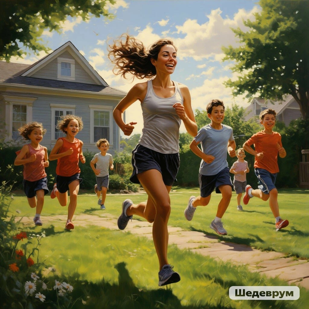Каждое утро в восемь утра, Стройная женщина бежит у двора, Столько задора и интерес Вызвал еë спортивный процесс. Быстро бежит, только пятки свистят, Что вызывает восторг у ребят. Следом уже и бежит детвора, Бегом уже заниматься пора! Автор Антон Власов.