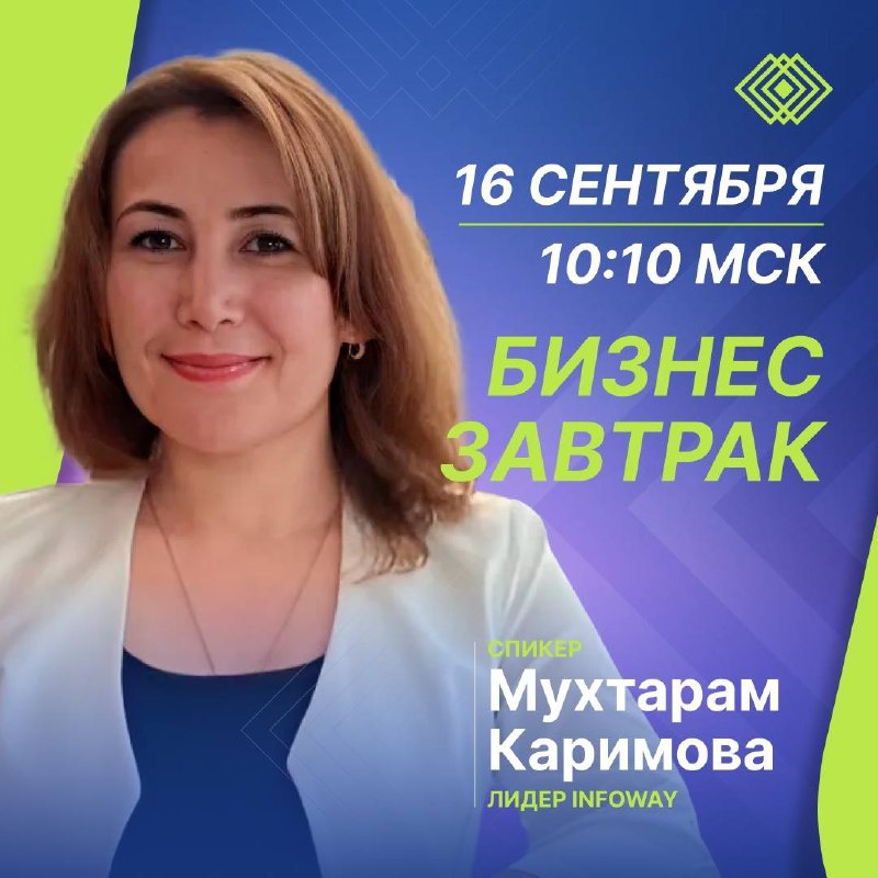 ⚡️Бизнес-завтрак с экспертом! Мухтарам Каримова: стартуем в новый сентябрь вместе!⚡️ 16 сентября в 10:10 приглашаем всех желающих присоединиться к нашему традиционному бизнес-завтраку! Не упускайте возможность начать свой день с мощного заряда мотивации и свежих идей для развития! Присоединяйтесь к нам за чашечкой ароматного кофе и откройте новые горизонты возможностей уже в 10:10! Важно! Бизнес-завтрак пройдет на платформе Zoom 🔥 Просим вас перейти по ссылке ниже: Подключиться к конференции Zoom: https://us06web.zoom.us/j/2116731674?pwd=xahqmhZLmGsNMAcfVYG8sNdiNWlLRY.1 Ждем вас в 10:10! Не пропустите возможность пообщаться и обменяться опытом. До встречи на бизнес-завтраке!