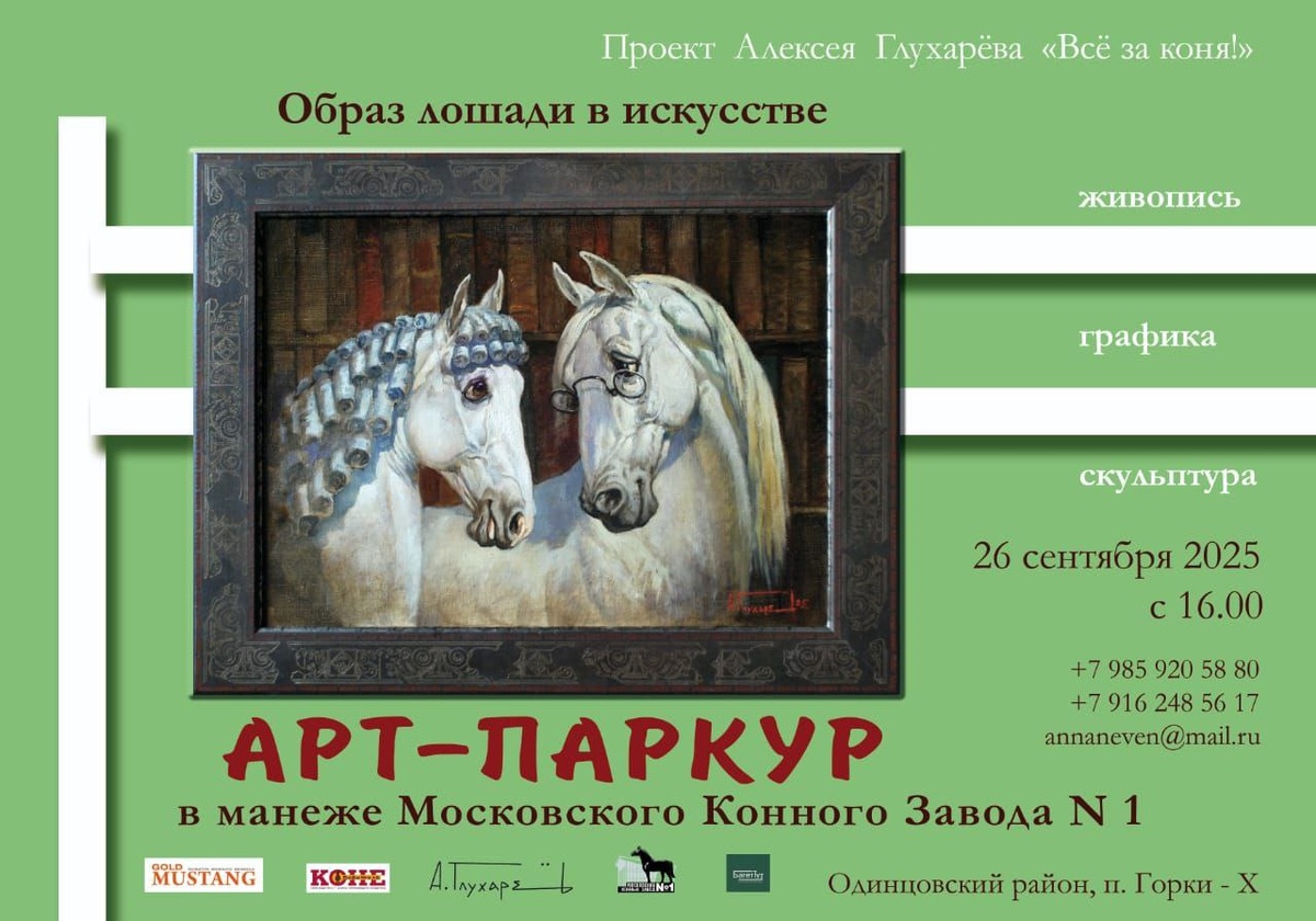 Милые дамы! Уважаемые господа! Друзья! 26 сентября 2025 года, в преддверии Кубка памяти Н.М. Шурыгина в Московском конном заводе №1, предлагаем Вам погрузиться в мир искусства и спорта. Вас ждёт уникальное представление «Арт-Паркур», проводимое в рамках проекта Алексея Глухарева «Всё за коня!». Путешествуя по выставке, гости проходят по маршруту в пространстве исторического манежа МКЗ №1 и знакомятся с произведениями авторов, посвятивших своё творчество Лошади. «Арт-Паркур» - живопись, графика, скульптура. Организаторы: Алексей Глухарёв, Московский конный завод №1 Также ассоциацией для представления интересов и защиты прав детей с тяжёлыми и множественными нарушениями развития «Наш путь» в фойе МКЗ №1 будет представлена небольшая экспозиция картин! Работы детей впечатляют, рекомендуем к посещению! #лошади #живопись #скульптура #искусство