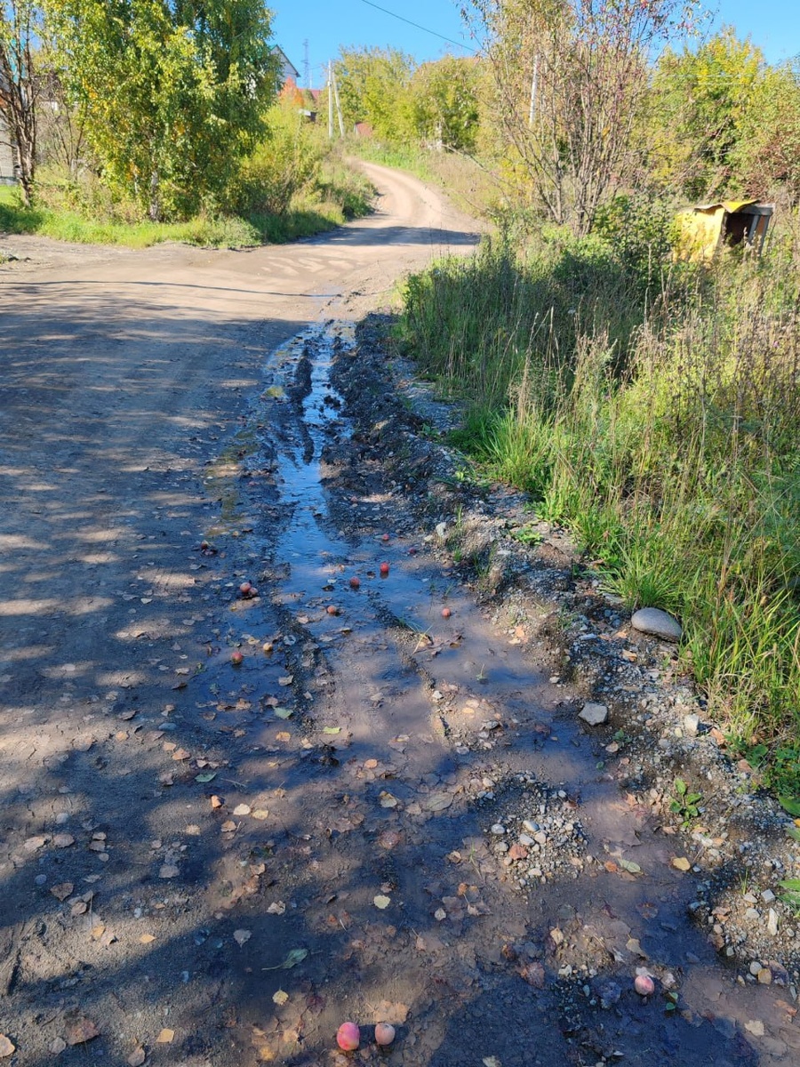 Второй год не могут сделать дорогу по улицам Радужная, Тенистая. Вода по дороге течёт. Скоро холода - дорога во льду будет.