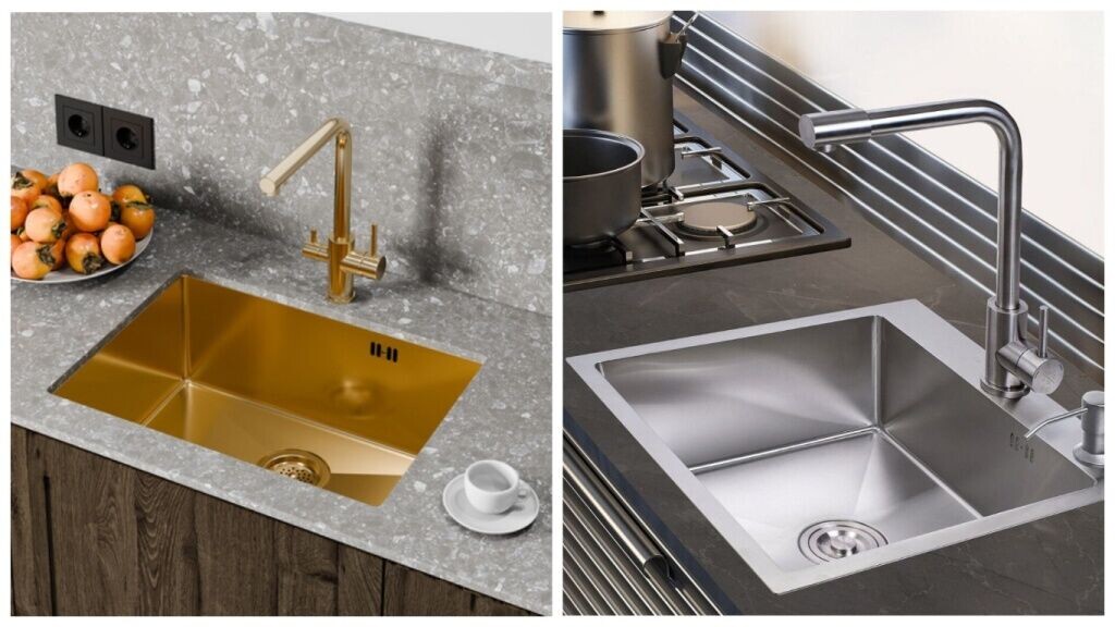 - обработаны методом PVD (нанесение дополнительного слоя другого металла), что делает их устойчивыми к окрашиванию, перепаду температур, кислотам, щелочам, абразивам и простыми в уходе (достаточно губки и моющего средства). Если всё же вдруг мойка подверглась очень сильному механическому воздействию (удару) и на ней появилась царапина или скол, дефект будет совсем незаметен, так как PVD-покрытие внедряется на молекулярном уровне;