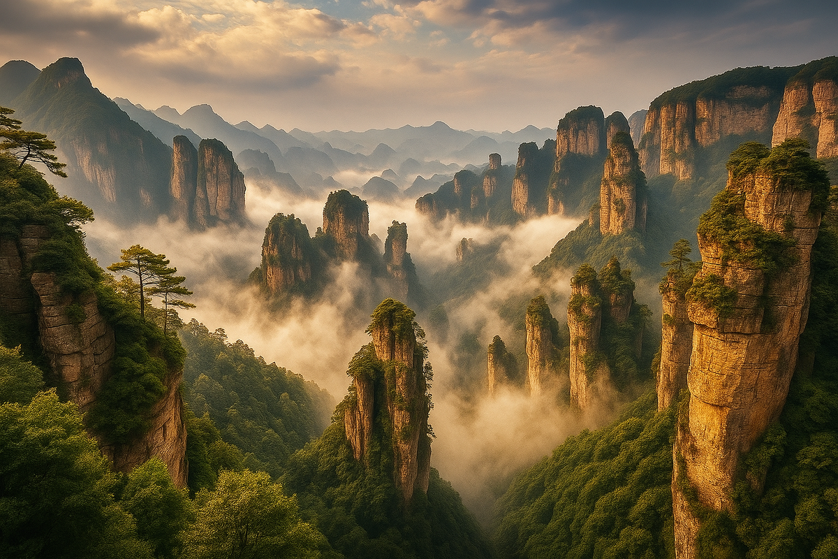 Я не фанат фантастики, но в тот момент залип. Высоченные скалы, уходящие в облака, туман, как в сказке, и эти висячие мосты между вершинами… Я даже пересмотрел тот самый «Аватар», чтобы сравнить — и правда, всё один в один.