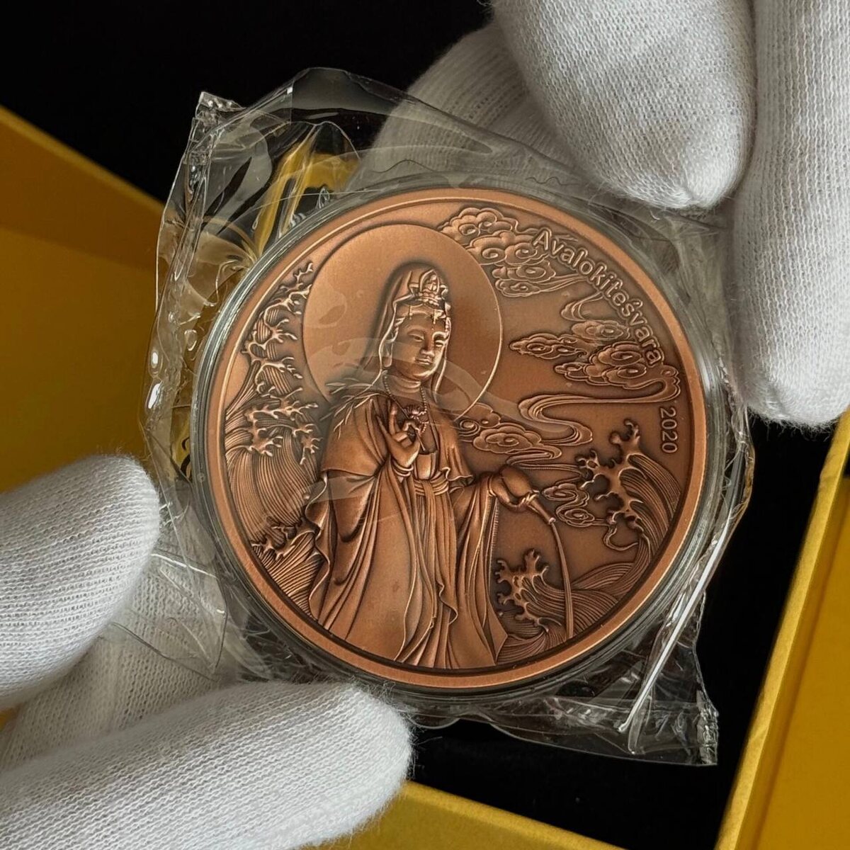 От античной богини к буддистскому бодхисаттве! Новый взгляд на коллекцию. Недавно мы знакомили вас с монетой, посвящённой греческой богине здоровья Гигиее. Продолжаем наше путешествие по пантеонам и религиям мира! Теперь предлагаем обратить внимание на восточную мудрость и глубину буддизма. В нашей коллекции монета ½ доллара с островов Самоа, посвящённая Авалокитешваре — одному из самых почитаемых бодхисаттв в буддизме Махаяны. Его имя переводят как «Владыка, взирающий с состраданием». Авалокитешвара — это воплощение бесконечного сострадания ко всем живым существам, эманация будды Амитабхи. Его образ полон спокойствия, мудрости и готовности помочь каждому. Впечатляющий размер, роскошная упаковка в стильный футляр и сертификат подлинности определенно сделают медную монету Богиня Авалокитешвара 2020 года жемчужиной коллекции или изысканным подарком для истинного ценителя. #Самоа #Монеты #Нумизматика #Буддизм #Авалокитешвара #Бодхисаттва #Коллекционирование #МонетыМир #ПамятныеМонеты #Мо