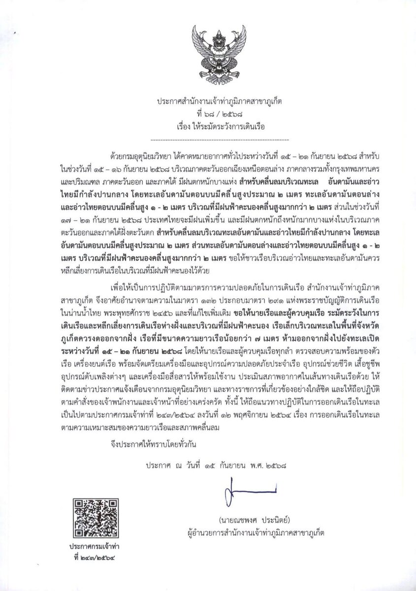🌊 Предупреждение Морского департамента Пхукета По 20 сентября на Андаманском море ожидаются сильные дожди и высокие волны: ▪️ 2–4 метра в среднем ▪️ более 4 метров в районах гроз 🚫 Малые суда (менее 7 метров) не допускаются к выходу в море. Все остальные должны соблюдать крайнюю осторожность, проверять оборудование и спасательные средства. Туристам и жителям рекомендуют воздержаться от морских прогулок в этот период и внимательно следить за официальными предупреждениями. 🌴 Прислать новость | Подписаться | Смотреть другие новости