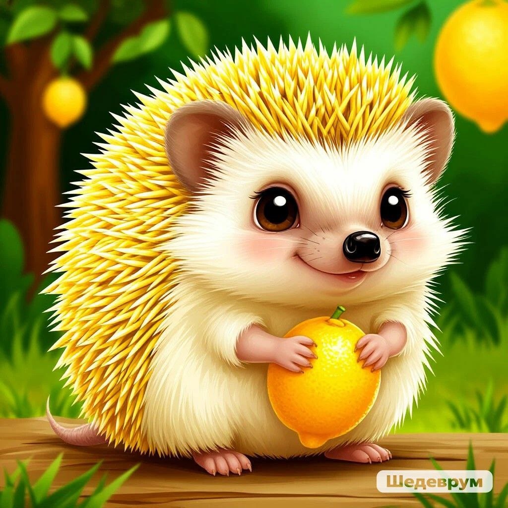 В Лимонном лесу, где деревья плодоносили сочными цитрусами, жил необычный ёжик по имени Цитрус. Его иголки, как дольки спелого лимона, сияли золотистым светом, а сам он пах свежестью и солнцем. Цитрус был самым жизнерадостным обитателем леса, всегда готовым поделиться хорошим настроением и своими сочными находками.