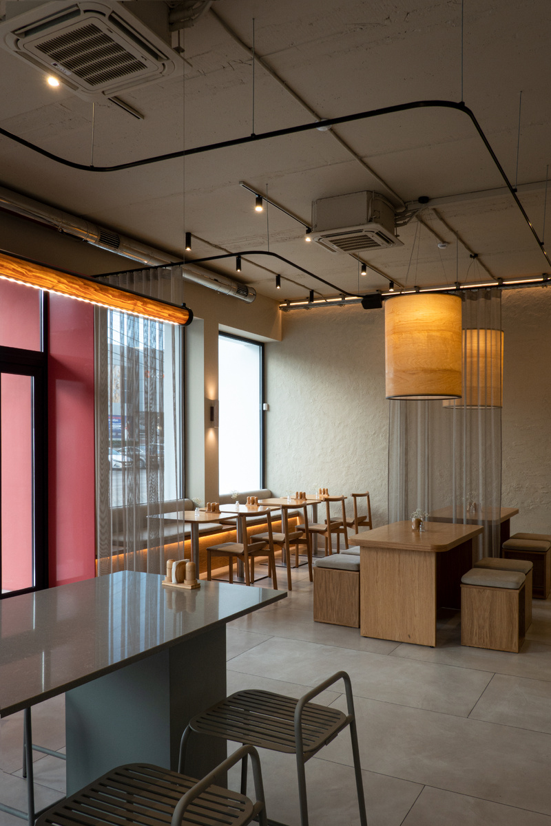 В мире дизайна интерьеров часто случается так, что идеальный светильник существует только в голове дизайнера. Именно с такой ситуацией столкнулась Екатерина Саракула, создавая интерьер пекарни Aroma Bakehouse в Севастополе. Екатерина задумывала пространство как место, где «свежая выпечка встречается с качественными продуктами в атмосфере уюта». Для воплощения концепции тёплой натуральной палитры из светлого дерева требовались особенные светильники — такие, которых просто не существовало на рынке. Именно поэтому дизайнер обратилась к команде WOODLED с запросом на разработку уникального светильника специально для этого проекта. Задача была амбициозной: создать освещение, которое органично дополнит интерьер, добавит тактильное визуальное тепло и станет неотъемлемой частью архитектурной драматургии. Денис Пирогов, начальник производства WOODLED, до сих пор помнит тот момент, когда получил техническое задание: «Это был настоящий вызов для нашей команды. Дизайнер заказал светильник размером