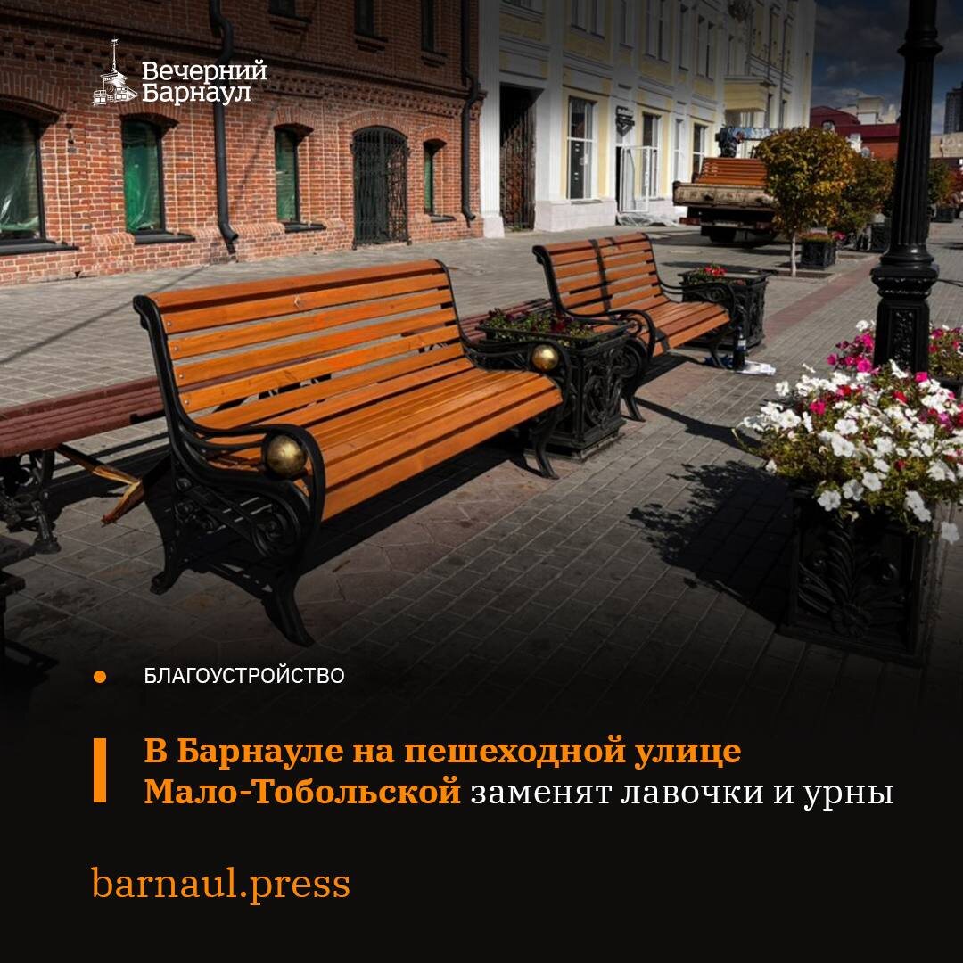 ✅ На Мало-Тобольской улице в Барнауле началась замена лавочек и урн. Всего установят 24 новые скамейки, 12 из них будут посвящены купеческому периоду города. На боковых опорах лавочек разместили символы, отражающие основную деятельность предпринимателей и купцов. До конца октября на них появится QR-код, ведущий на аудиогид. Фото: barnaul.org @barnaul