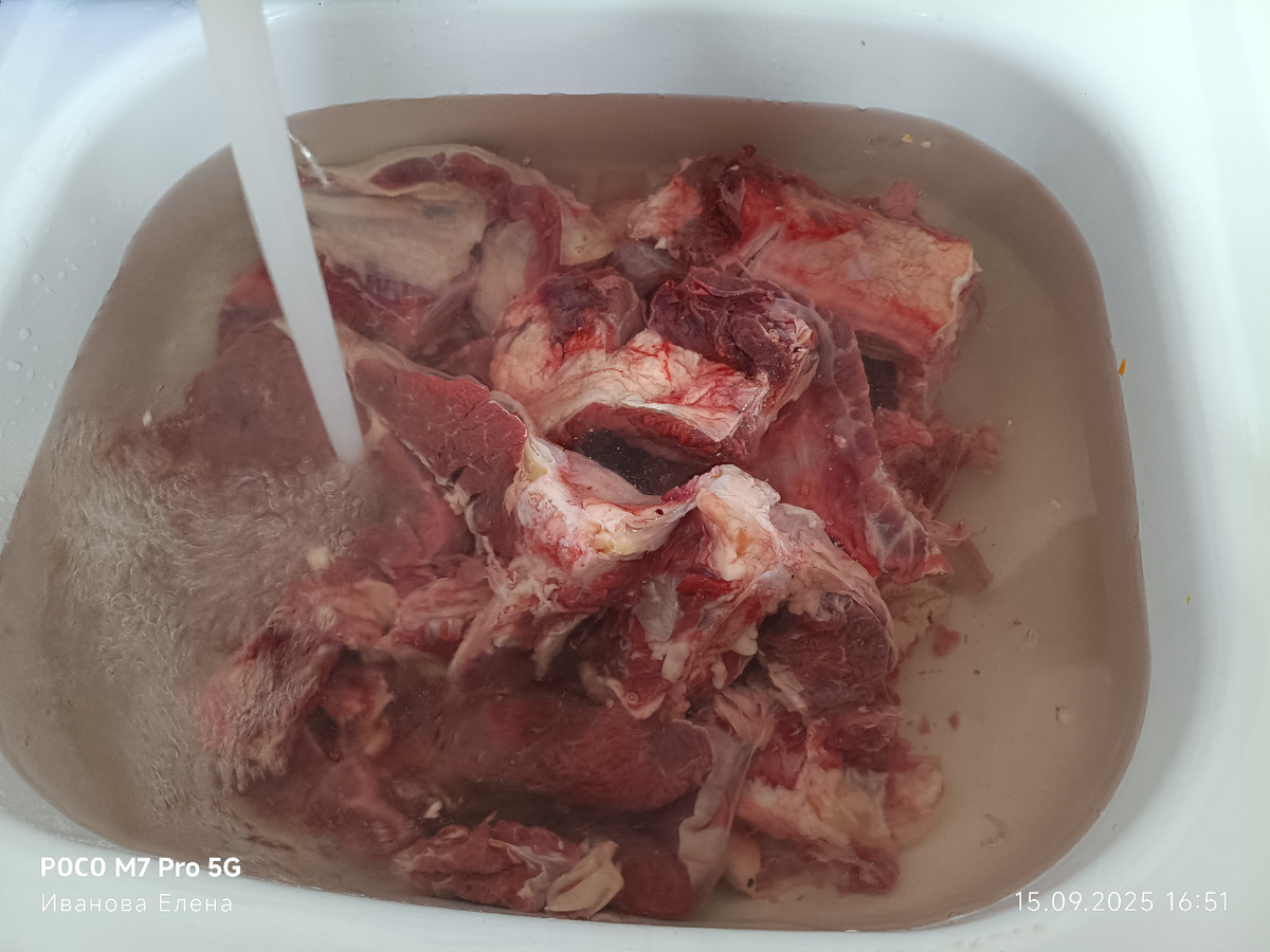 Я мою, что-то чисто психологическое, что ли? Купила, надо вымыть перед тем, как убрать на хранение. Вчера были на рынке, купили замечательную говядину для приготовления супов. Разложила по пакетам, часть сразу отложила для приготовления холодца. Часть порезала сразу на гуляш. Это в Афганском казане все на холодец приготовлено. Эксперты не рекомендуют мыть мясо, и на это есть веские причины: 1. Бактерии погибают при нагревании выше 65°C. Если на куриной грудке есть сальмонелла или другая патогенная микрофлора, она погибнет в процессе приготовления, поэтому мыть мясо горячей водой не имеет смысла. 2. Мытье мяса под холодной водой не уничтожает бактерии. Более того, полностью избавиться от них невозможно. 3. В процессе мытья можно заразить окружающие предметы, продукты и поверхности. Микробы и бактерии не исчезают бесследно, а остаются на раковине и могут попасть на овощи, фрукты и другие продукты, которые вы будете мыть. 4. Мелкие брызги, которые не видны глазу, разлетаются на метр вокру