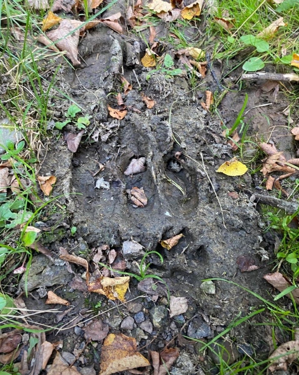 Большущий отпечаток (лапы?) заметили местные жители, когда шли в Девичью пещеру возле села Макарово Ишимбайского района. След они увидели возле последнего дома села на пути в пещеру. Его масштаб можно оценить, сравнив с пожелтевшими листьями. Возможно, в окрестностях прогуливался медведь. А вы как думаете? Фото: https://vk.com/makarovorb