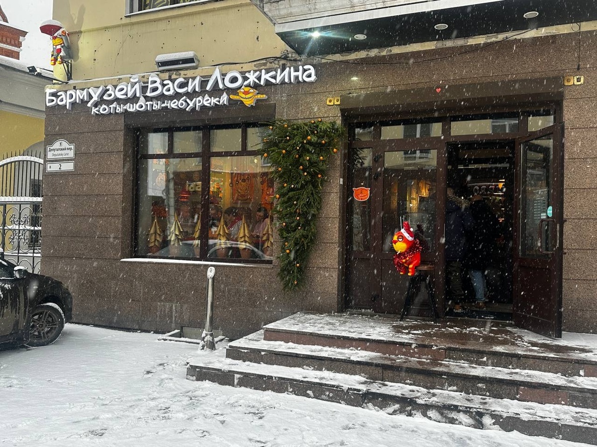 Ещё одной локацией, которую несомненно стоит посетить, если Вы находитесь в Ярославле , -это Бар-музей «Васи Ложкина», открывшийся в городе летом 2024 года. Расположен бар в самом центре города по адресу: Депутатский пер., д.2. Напомню, в своих обзорах я уже рассказывал про самое первое заведение сети в Казани, а также про бар, расположенный во Владивостоке . В целом концепция интерьера ничем не отличается от тех заведений сети , которые я посетил - те же высокие столы с барными стульями, свисающие с потолка гирлянды флажков и конечно же картины Васи Ложкина со знаменитыми котами . В меню по 10 видов чебуреков и янтыков (чебуреки жареные на сухой сковороде) Но в отличии от баров в Казани и э здесь нет какого то своего фирменного чебурека . В Казани, если вы помните» в меню есть однозначный хит - чебурек (янтык) с кониной, а во Владивостоке - с крабом и морепродуктами . Хотя возможно на этот Статус может претендовать чебурек с Судаком и курицей. Я к сожалению его не стал пр