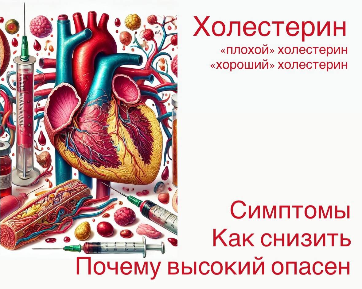 Холестерин — это жироподобное вещество, необходимое для нормальной работы организма. Он участвует в: построении клеточных мембран; синтезе гормонов (половых, кортизола); выработке витамина D; образовании желчных кислот. Важно понимать: холестерин бывает «хороший» и «плохой». ЛПВП (липопротеины высокой плотности) — «хороший» холестерин. Он очищает сосуды от жировых отложений и переносит холестерин в печень для переработки. ЛПНП (липопротеины низкой плотности) — «плохой» холестерин. В избытке он оседает на стенках сосудов, образуя атеросклеротические бляшки. Почему высокий холестерин опасен? Избыточный уровень ЛПНП приводит к атеросклерозу — хроническому заболеванию сосудов. Это повышает риски: инфаркта миокарда; инсульта; гипертонии; ишемической болезни сердца; нарушений памяти и когнитивных функций. Сосуды становятся узкими и ломкими, кровоток ухудшается, органы недополучают кислород. Симптомы высокого холестерина На ранних стадиях повышенный холестерин никак не проявляется. Первые