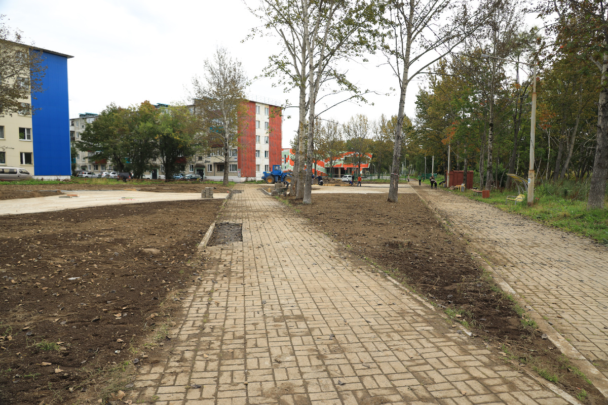 СКВЕР В ПИОНЕРСКОМ ОБРЕТАЕТ ФОРМУ
