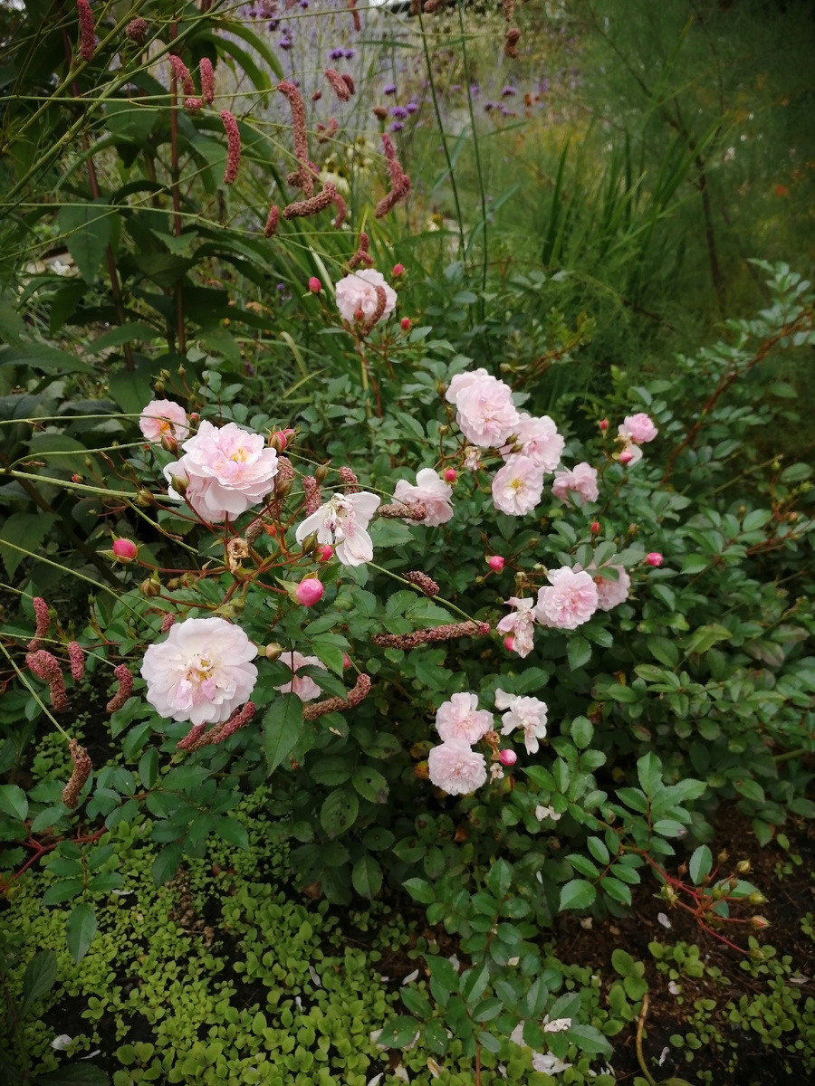 Нынче часть моего невеликого поголовья прямо "звездит". Не все, но многие неплохо цветут, для сентября-то. Так что в воскресенье я ходила и фотографировала. Вот наконец "дошла до кондиции" мускусная 'Annelies'. Конечно, до белой шапки первого цветения ей далеко, но это, подозреваю, из-за короткой обрезки в середине сезона. Зато куст аккуратный. В зиму попробую все же пригнуть, а не резать коротко. 'Kelly' как будто бы вообще ничего не замечает - ни дождей, ни холодов. Даже веснушек на ней нет, хотя обычно она на осадки именно появлением крапинок и реагирует. 'Lovely Green' осенью ведет себя как чайник - выдала по одному цветочку на ветку. Но зато без дураков - никаких тебе запеченных лепестков. Рядом доцветает 'Winchester Cathedral'. Напротив неспешно выдает цветок за цветком 'Pastella'. С приходом низких температур она порозовела. И даже поеденная почти в ноль 'Arrow Folies' к осени почти пришла в себя. Впрочем, сфотографировать ее нормально как обычно не получилось, тут она ве