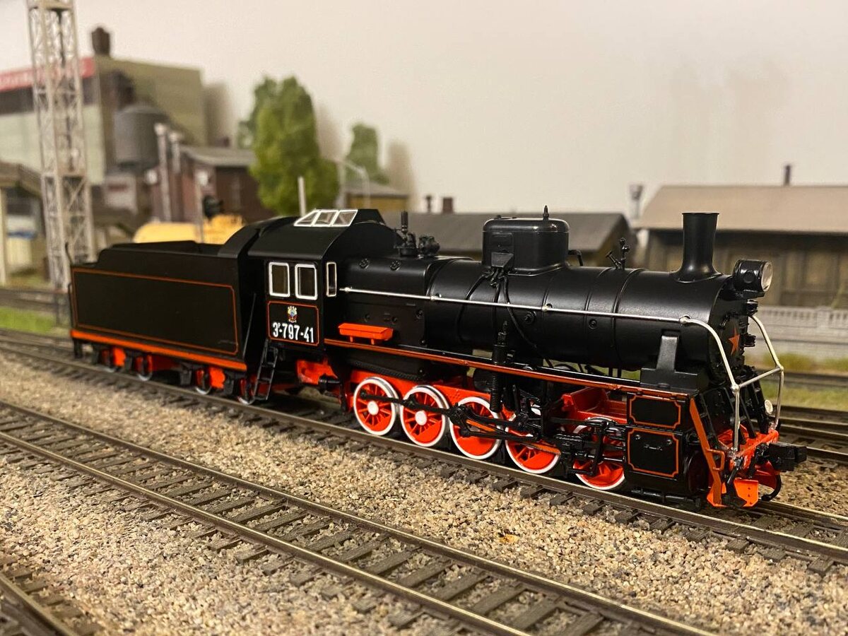 Модель паровоза Эр из 26 номера журнала "Наши поезда" от издательства MODIMIO на макете.