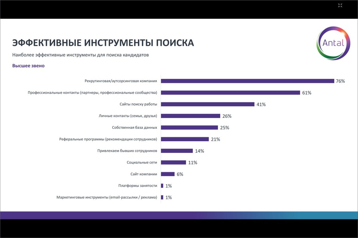 Планы компаний: Пульс опрос от Antal Talent по результатам 3 квартала 2025 года ЧАСТЬ 3 - Несколько интересных слайдов про 🔽 - Инструменты поиска для высшего и среднего звена - Ситуация с контрофферами продолжение....🔽 #Цифры@poldner #Тренды@poldner