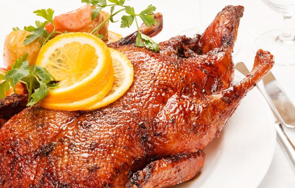 Как обработать утку и при какой температуре выпекать в духовке, чтобы получилась самая румяная и хрустящая корочка. Утка, запеченная в духовке, - выигрышный вариант для любого стола. Ее можно подавать и в праздник, и в обычный день, совершенно без повода. Вот только не всегда получается запечь утку так, чтобы она была румяной. Стоит знать некоторые секреты для того, чтобы корочка получилась хрустящей. В отличие от курицы, утка жирная, поэтому ее не смазывают маслом или сметаной. Чтобы корочка утки получилась хрустящей, необходимо избавиться от лишнего жира. Обрежьте его в области шеи и задней части. Помните, что большое количество жира размягчит корочку и не даст нужного результата. Немного позже, когда подготовите тушку и обмажете специями, нужно будет проткнуть зубочистками или вилкой область вокруг грудки и бедер. Проколы следует делать до жира, не до самого мяса. Так в процессе приготовления лишний жир будет из тушки выплавляться и стекать. Вам понадобится около 5 литров кипяченой