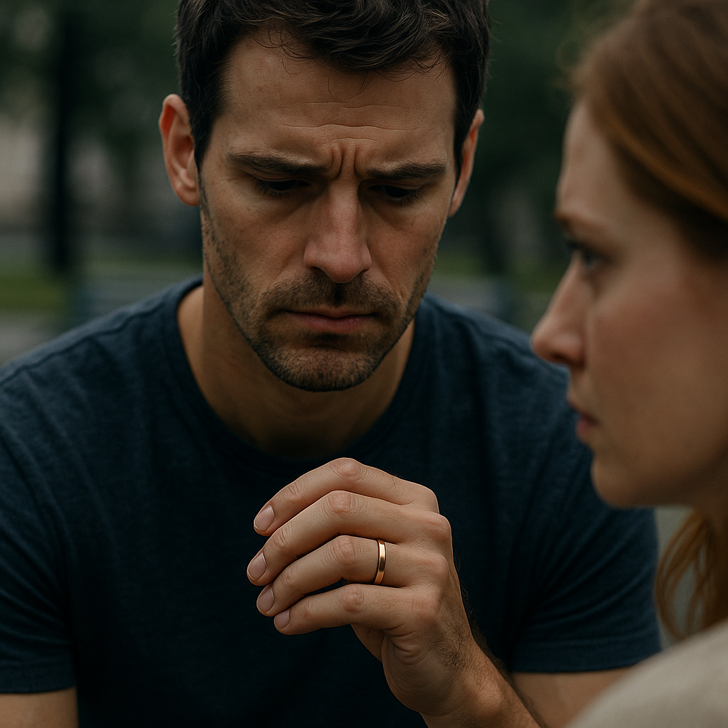 Она заметила это не сразу — сначала взгляд скользнул по лицу, изменившемуся, как после долгой болезни или чужой жизни; по ямочке у виска, которая когда-то казалась ей входом в тайный сад; по усталым, невыспавшимся глазам, в которых не отражался ни двор, ни скамейка, ни сентябрьская рябь на лужах. И только потом — будто кто-то тихо щёлкнул выключателем — она увидела на его руке обручальное кольцо. Тонкий золотой ободок, незаметный, как шрам, но именно потому безжалостно явный. «Я увидела на его руке обручальное кольцо — и в тот миг всё внутри рухнуло», — подумала она так спокойно, что сама испугалась этой ясности. В такие минуты люди кричат, бледнеют, хватаются за сердце; она же просто села, чтобы не упасть, и пристально уставилась на его пальцы, словно оттуда можно было прочитать оправдание.