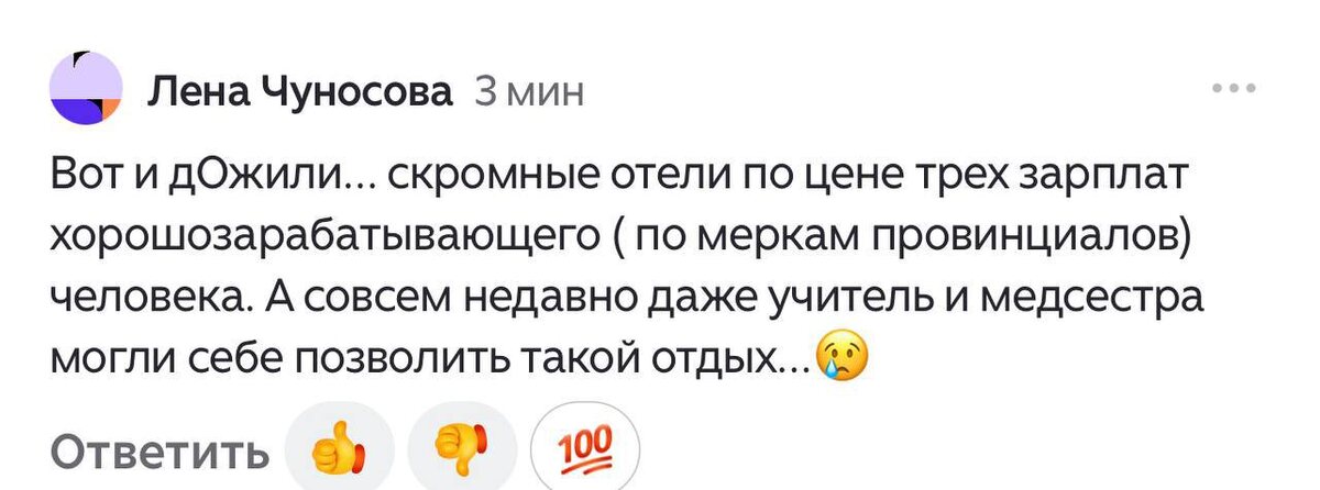 «Вот и дОжили... скромные отели по цене трех зарплат…А совсем недавно даже учитель и медсестра могли себе позволить такой отдых...» Знакомо?