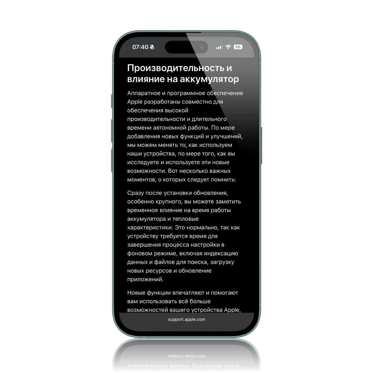 🔥 Фейк про iOS 26: Apple якобы признала деградацию батареи В соцсетях активно разгоняют слух, что iOS 26 «убивает аккумулятор». Якобы Apple сама это подтвердила. Но это неправда. Что на самом деле сказала компания: «Сразу после установки обновления, особенно крупного, вы можете заметить временное влияние на время работы аккумулятора и тепловые характеристики. Это нормально, так как устройству требуется время для завершения процесса настройки в фоновом режиме: индексация данных, обновление приложений, загрузка ресурсов». ⚡ Ключевые слова — «временное влияние». Несколько дней после апдейта айфон может быстрее садиться и греться. Но как только система «усаживается», всё возвращается в норму. iOS 26 не «убивает» батарею. Это обычный процесс после обновления, и никакой официальной информации о деградации аккумуляторов нет. 💬 @Mikhaylov_Review