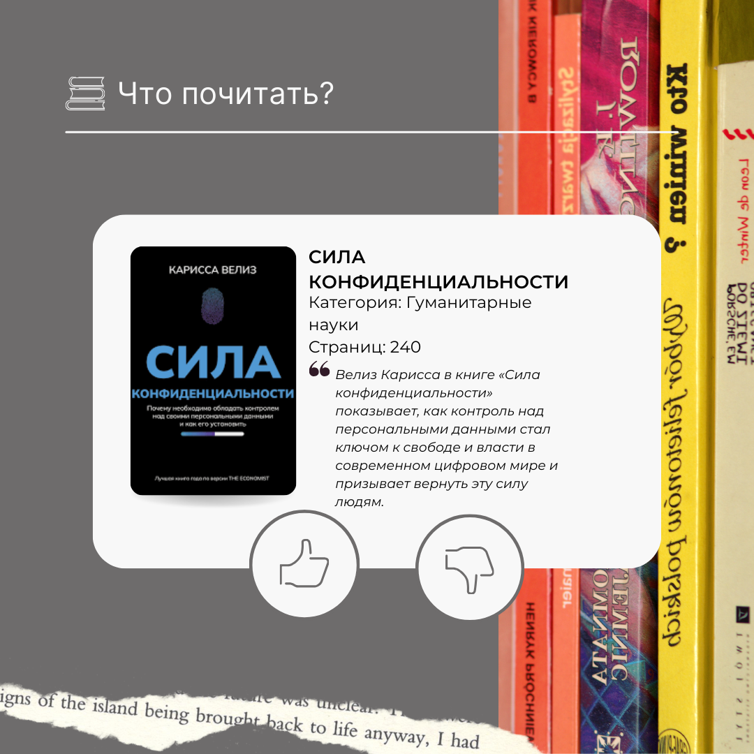Для кого: всем, кто хочет понять, как современный мир цифровых технологий влияет на личную жизнь, и что можно сделать, чтобы защитить свои данные и сохранить свободу. Велиз Карисса в книге «Сила конфиденциальности» подробно раскрывает проблему сбора и использования персональных данных в эпоху «экономики слежки». Она показывает, как крупные корпорации и правительственные структуры проникают в нашу частную жизнь через повседневные действия — от включения будильника до прокрутки новостной ленты. Карисса объясняет, почему конфиденциальность — это не просто приятный бонус, а фундаментальное право, необходимое для сохранения автономии, свободы и демократии. Автор рассказывает об исторических и современных аспектах вопроса, о токсичности чрезмерного контроля и торговле личными данными, а также предлагает конкретные пути, как вернуть контроль над собственной информацией. В книге поднимается важнейшая тема ответственности общества и каждого из нас, чтобы противостоять капитализму слежки и защит