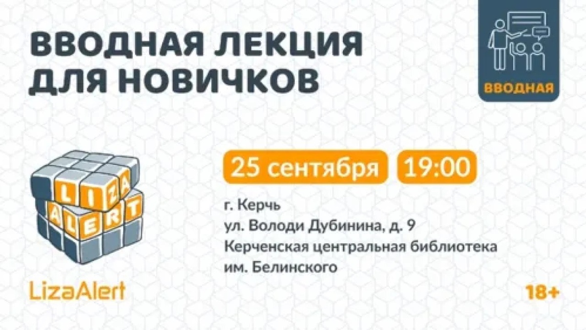 Узнайте больше о работе отряда #ЛизаАлерт на открытой встрече! Приглашаем жителей Керчи и Ленинского района на открытую встречу с отрядом #ЛизаАлерт. Мы расскажем, как устроен отряд, как приехать на свой первый поиск и как участвовать в поисках пропавших людей, не выходя из дома. Будет возможность познакомиться с добровольцами «ЛизаАлерт» и получить ответы на ваши вопросы. Ждём вас в четверг, 25 сентября 2025 года, в 19:00 по адресу: г. Керчь, ул. Володи Дубинина, 9... подробнее Подписывайся на КерчьФМ.РФ @kerchfm