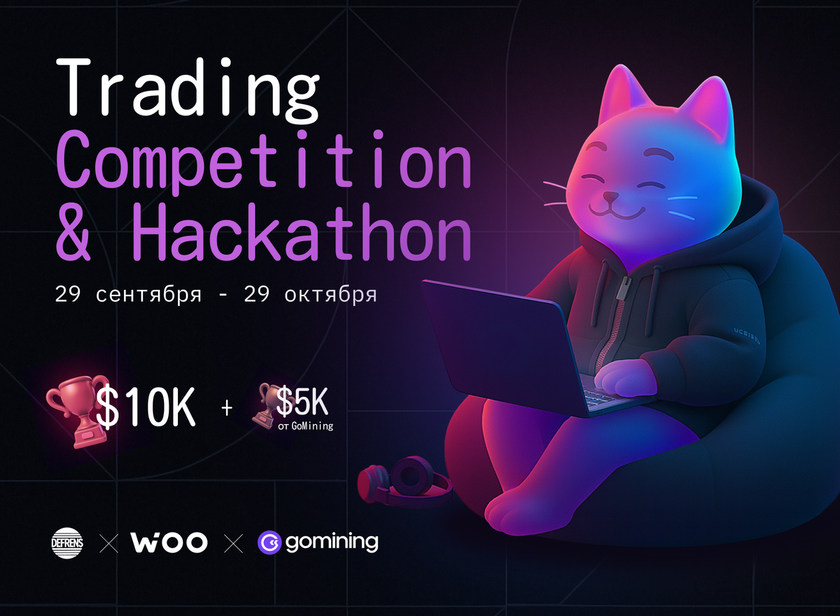 DeFrens вместе с WOOFi и GoMining.com запускают открытый хакатон для трейдинг-ботов. Торгуйте перпетуальными контрактами на WOOFi Pro, набирайте импакт и поднимайтесь в лидерборде.