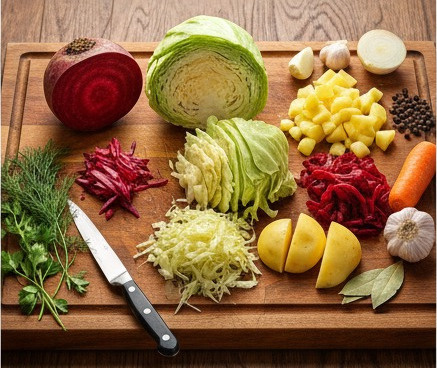 - Уксус или лимонный сок — 1 ст. л. (чтобы свёкла сохранила цвет)