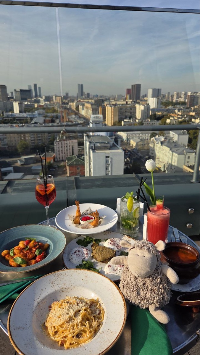 Еда и сервис: где Novotel Moscow Center промахнулся Не всё в Novotel Moscow Center идеально. С едой и сервисом есть нюансы, и их сложно не заметить.🤨 Мы заказали обед из бара на смотровую площадку. Через 45 минут принесли… холодные блюда. Просто забыли поднять вовремя, а потом, когда поняли ошибку, даже не догадались разогреть. В итоге ели холодные креветки (560 руб.), баклажан (500 руб.) и пасту (600 руб.). Вкус кое-где спасал ситуацию, ньекки даже холодные зашли (650 руб.), но, согласитесь, на террасе с идеальным видом хотелось бы и еду горячую.🤷🏻 Room-service вечером сработал лучше: борщ (550 руб.) и стейк рибай (2150 руб.) приехали оперативно и горячими. Но забыли винные бокалы. На следующий день снова прокол: заказали в номер чизбургер с картошкой (850 руб.) — и всё снова холодное. Салат «Цезарь» оказался огромным, а курица оказалась чуть пересушена (600 руб.). В общем, готовят неплохо, но сервис подводит. Блюда теряют вкус в пути и по температуре. Исправить это легко и нео