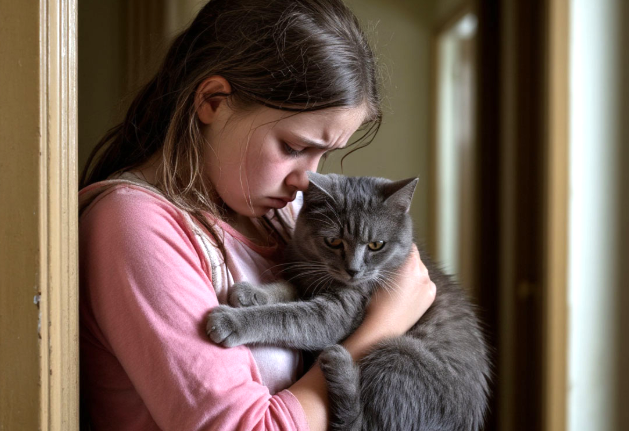 — Я нашла её возле школы, — сказала Настя, показывая родителям худую серую кошку с белыми лапками. — Она промокла и замерзла. Никто не хотел её брать, а я не могла оставить её там умирать.