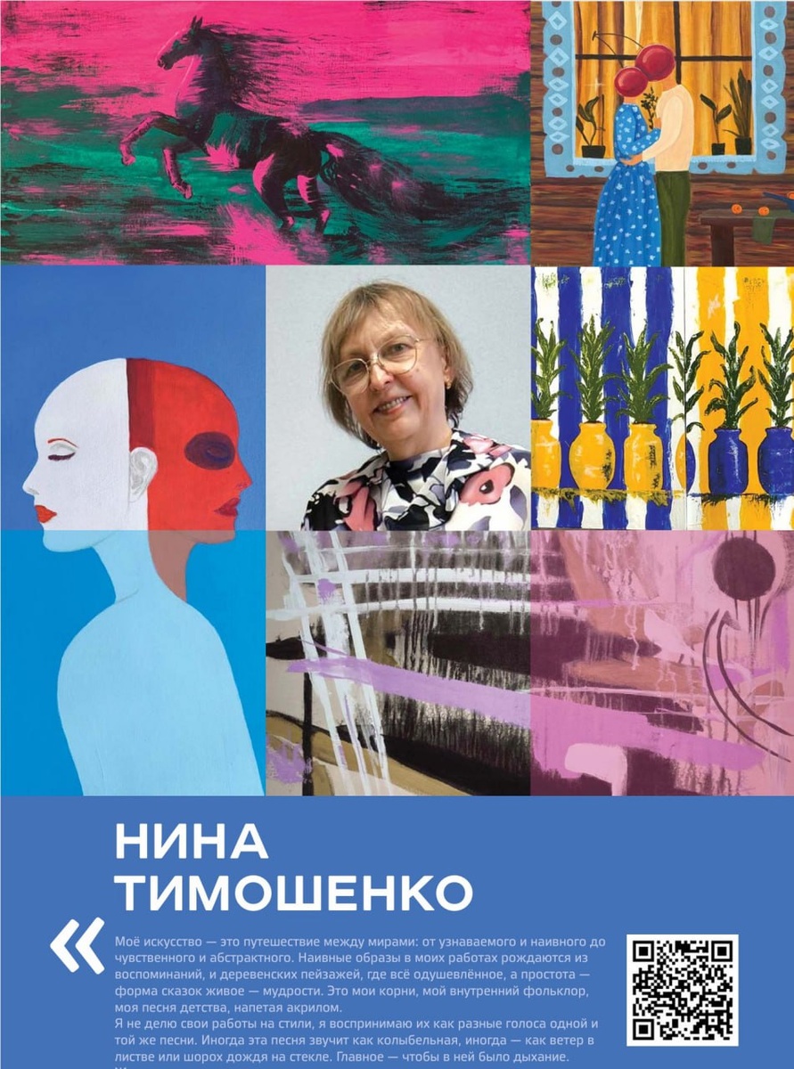 Мои работы — это путешествия между наивным и абстрактным. Иногда они звучат как колыбельная, иногда как ветер в листьях, а иногда — как тихий смех, который всплывает ни с того ни с сего.