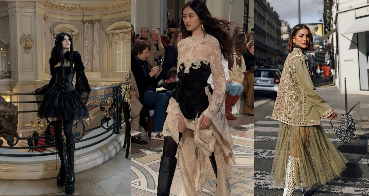 Но романтика будет не только светлой. Ей на смену придёт и «мрачная» версия: готический, слегка театральный стиль с полупрозрачными тканями, кружевом, бархатом и некоторыми элементами нижнего белья, которые перестанут скрывать: они будут частью образа.